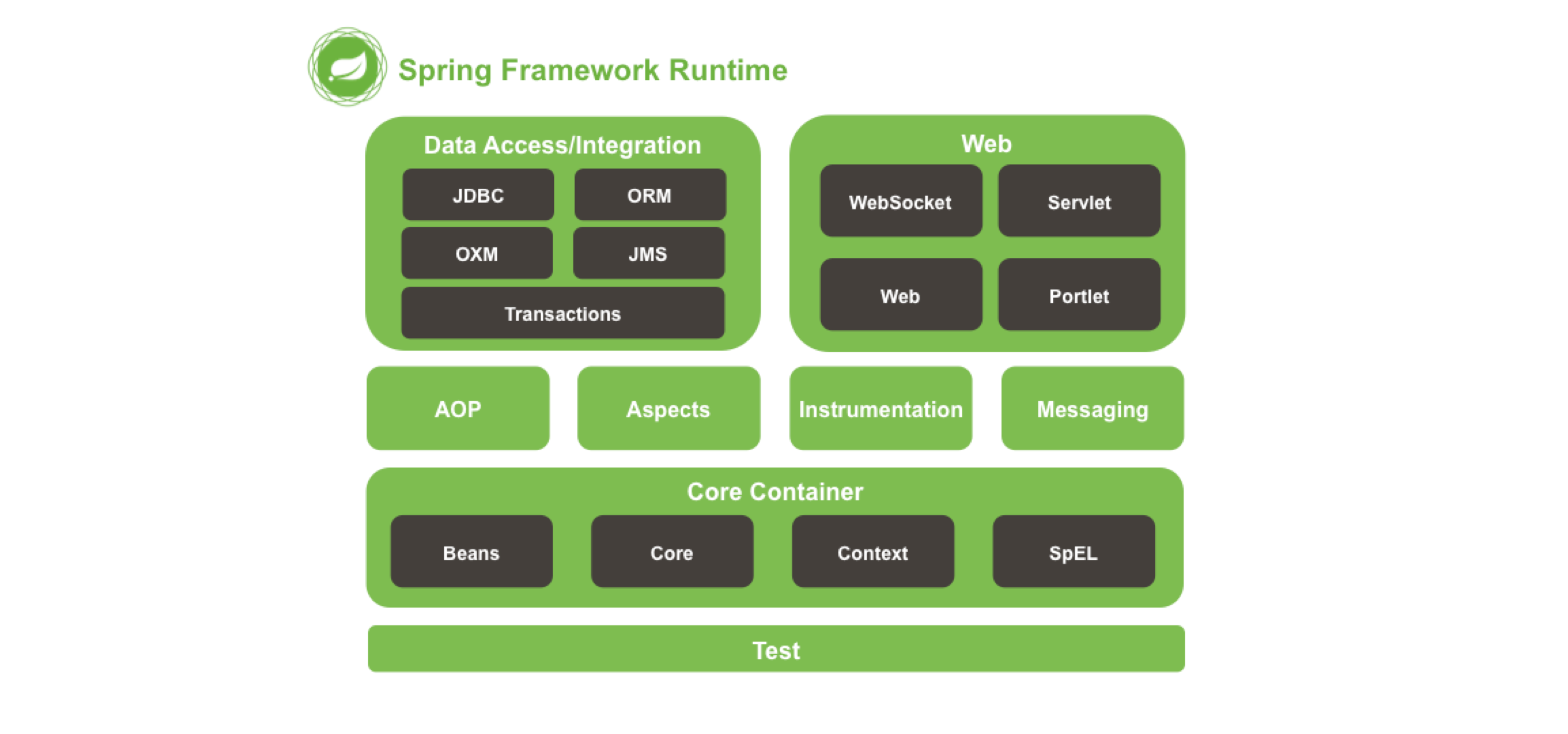 스프링 프레임워크는 20개 이상의 다른 모듈(경계가 명확)을 갖고 있는 고도화된 모듈이다.